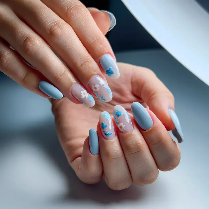 Spring calls for fresh, rejuvenating nail designs. Consider baby blue nails with tiny flowers, butterflies, or raindrops to celebrate the season. Combining baby blue with other pastel shades like soft pink, lavender, or mint creates a perfect spring palette.