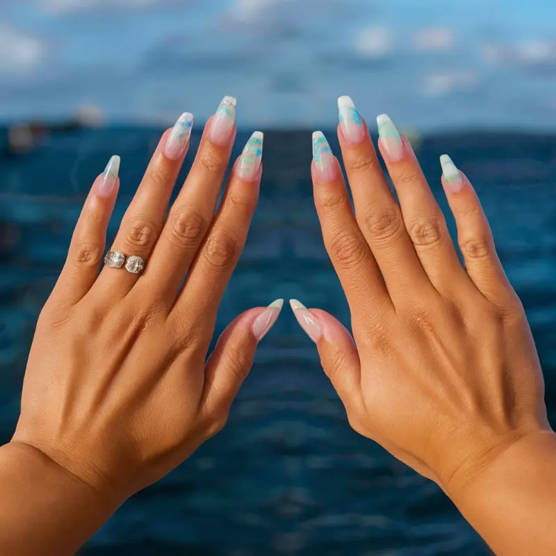 • Negative Space Designs: Incorporating the natural nail into ocean-inspired patterns
